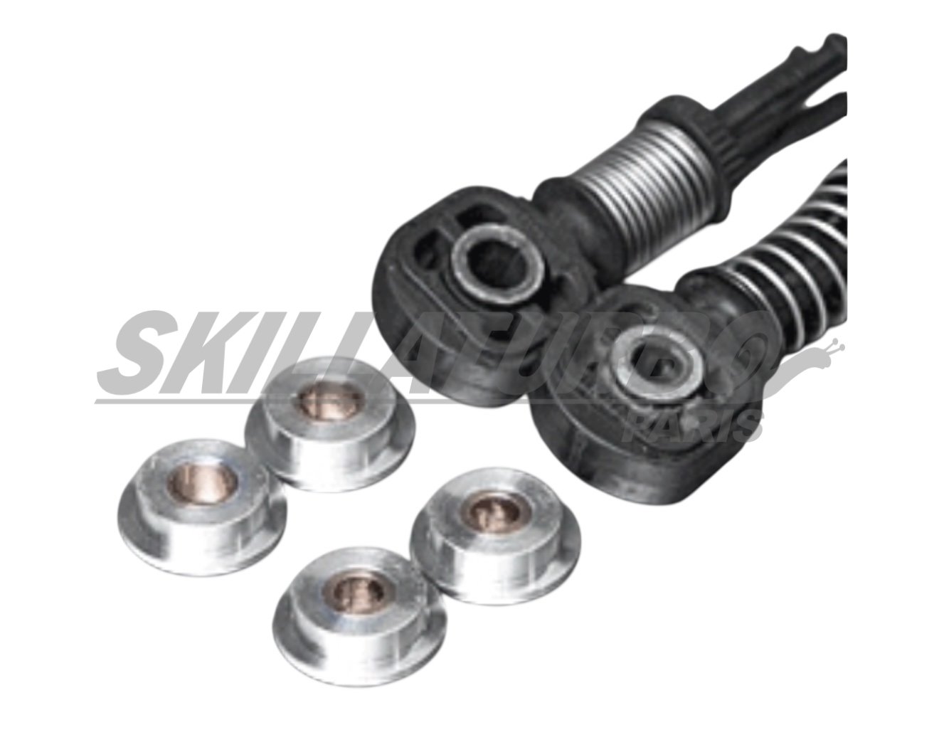 Estas buchas de alumínio de duas partes substituem as buchas de borracha originais. O problema das casquilhos originais é que aquecem na zona da caixa de velocidades e ficam moles. Portanto, a estabilização já não é garantida e as mudanças de velocidade já não são precisas.