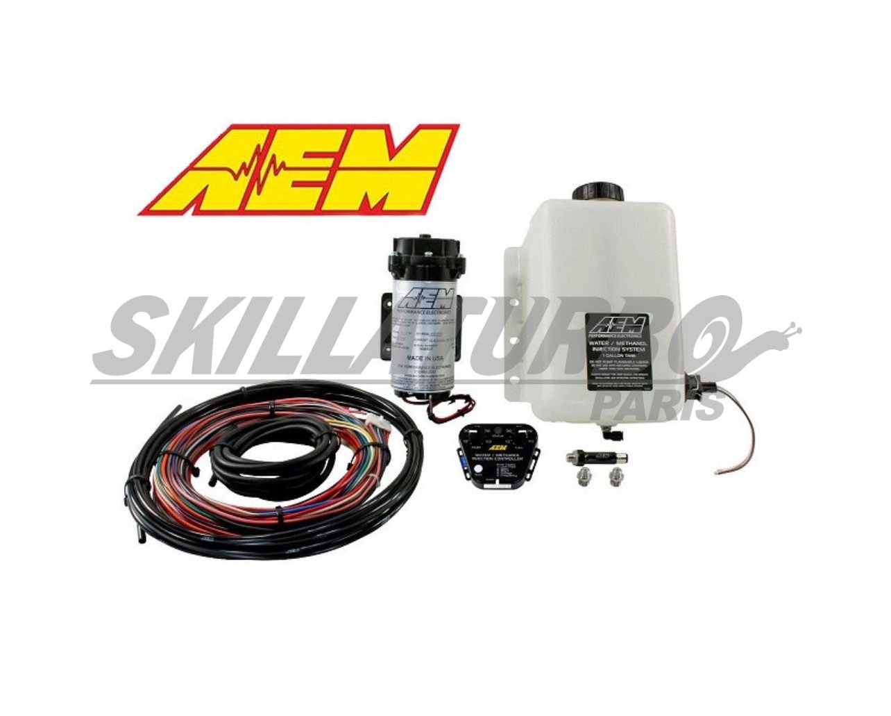 Kit Metanol AEM V2 composto com caixa de controlo, bomba, injetor, reservatório de 3.7L, sensor e acessórios de montagem