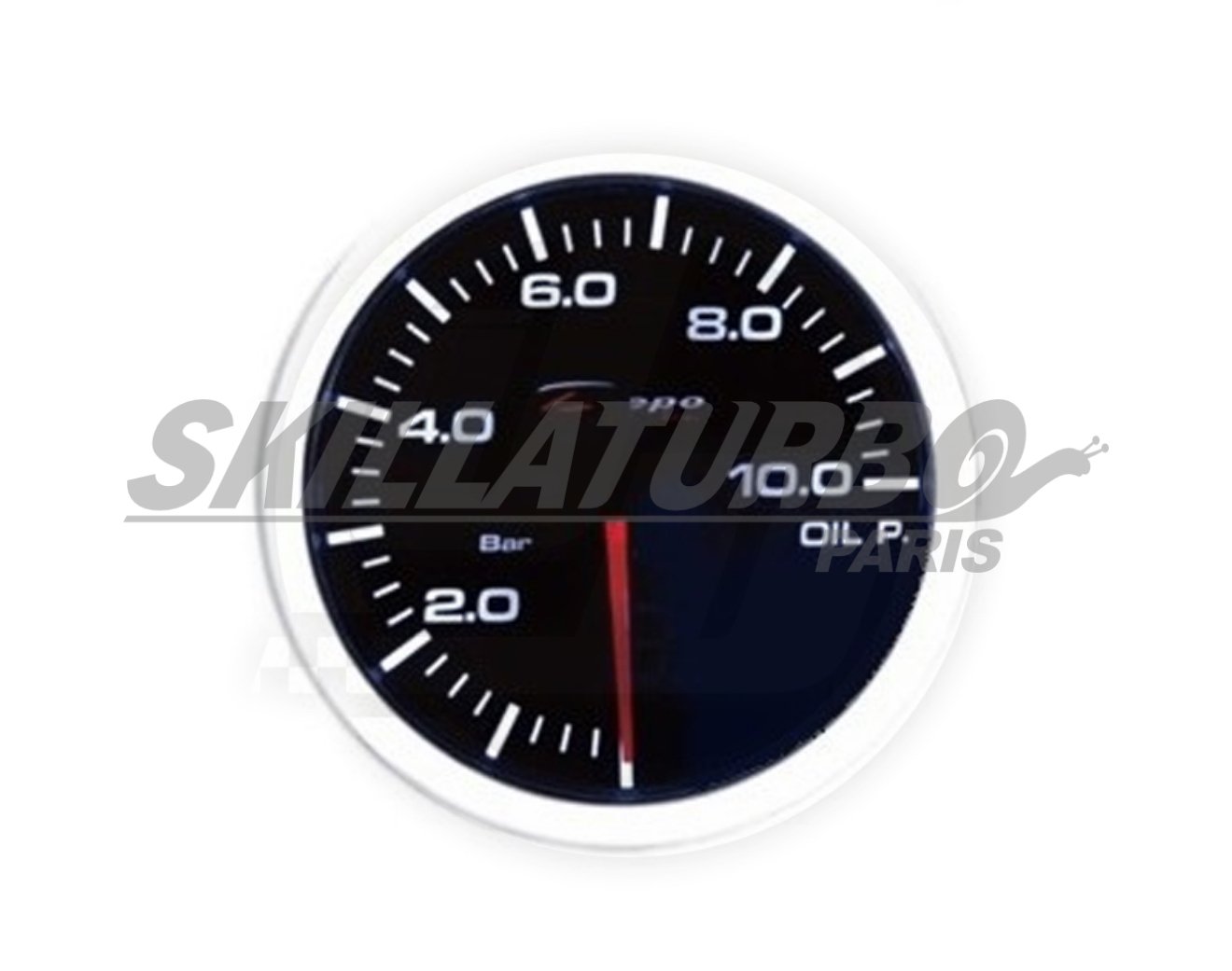 Manômetro de pressão de olio em 52mm fundo preto e vidro escuro